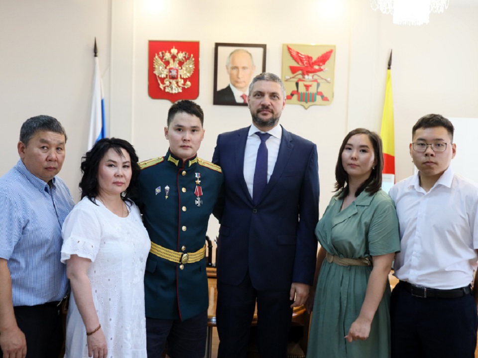 Губернатор Забайкалья Александр Осипов встретился с Балданом Цыдыповым, который получил звание Героя Российской Федерации за спасение 150 сослуживцев во время спецоперации на Украине. Военнослужащий рассказал главе края о своём самочувствии, реабилитации после тяжелого ранения и поделился планами на будущее. Об этом 21 июля 2022г. сообщалось на официальном портале региона.