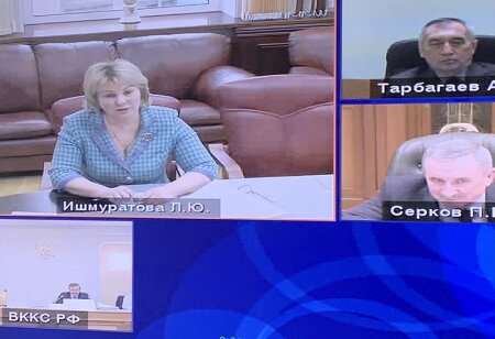 Председатель суда Михаил Птицын лично пояснил, что претендент хотела прибыть в ВККС, но поскольку она курирует очень большой пласт работы, было решено воспользоваться видеосвязью. «Именно я настоял на этом», – быстро защитил кандидата председатель суда. Он отметил, что сам предложил ее на должность. Представитель ВС поддержал кандидатуру Ишмуратовой.