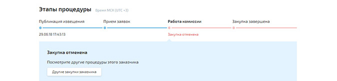 Организация в результате независимой антикоррупционной и правовой экспертизы электронного аукциона, извещение №0373500001518000041 от 29.06.2018г. на сайте в сети Интернет http://zakupki.gov.ru отменила государственную закупку на сумму: 87 261 420,03 рублей с учетом скрытых - 50 173 420,03 рублей, которая содержала явные нарушения закона.